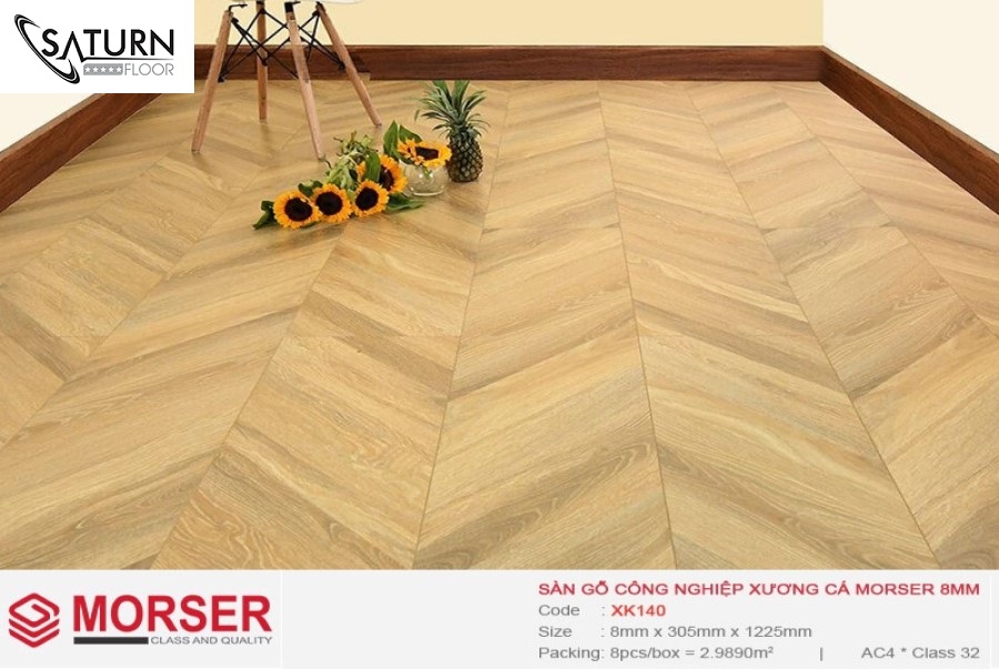 - Sàn gỗ Morser Xương Cá XK140 có mức giá hợp lí, chất lượng tốt so với các loại sản phẩm cùng phân khúc trên thị trường. Mẫu mã đa dạng, đẹp và sang làm cho sàn gỗ Morser có sức tiêu thụ rất lớn trên thị trường.