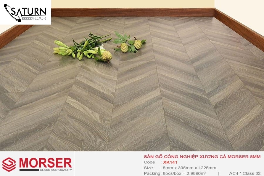 - Sàn gỗ Morser Xương Cá XK141 có mức giá hợp lí, chất lượng tốt so với các loại sản phẩm cùng phân khúc trên thị trường. Mẫu mã đa dạng, đẹp và sang làm cho sàn gỗ Morser có sức tiêu thụ rất lớn trên thị trường.