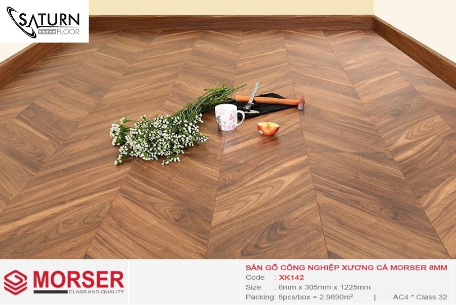 - Sàn gỗ Morser Xương Cá XK142 có mức giá hợp lí, chất lượng tốt so với các loại sản phẩm cùng phân khúc trên thị trường. Mẫu mã đa dạng, đẹp và sang làm cho sàn gỗ Morser có sức tiêu thụ rất lớn trên thị trường.