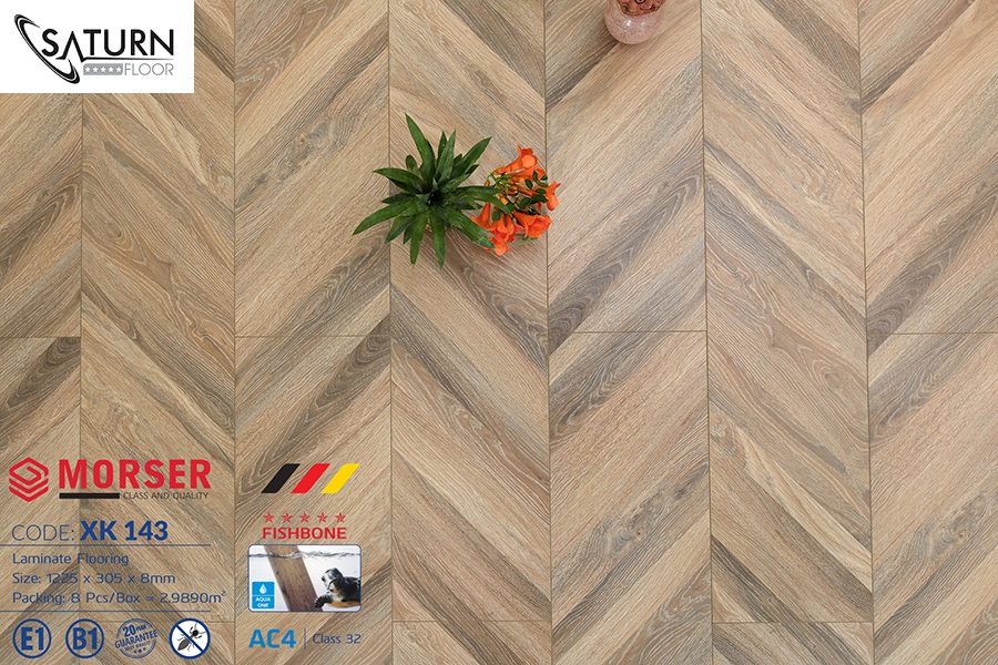 - Sàn gỗ Morser Xương Cá XK143 có mức giá hợp lí, chất lượng tốt so với các loại sản phẩm cùng phân khúc trên thị trường. Mẫu mã đa dạng, đẹp và sang làm cho sàn gỗ Morser có sức tiêu thụ rất lớn trên thị trường.
