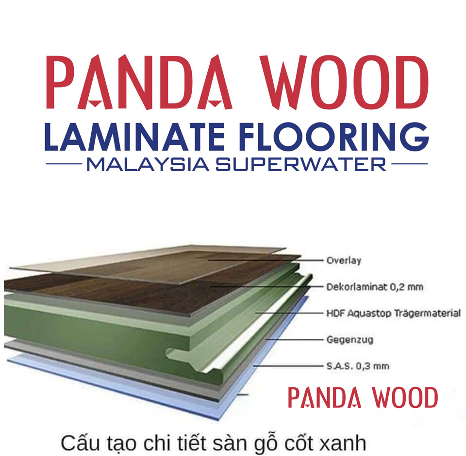 Sàn gỗ Panda Malaysia sở hữu chất liệu bền bỉ có xuất xứ từ Malaysia 100%, từ lớp giấy bề mặt chống ẩm cho đến thiết kế đế sàn cứng cáp đảm bảo cách nhiệt và kháng ẩm thẩm thấu từ dưới nền đất, đem đến không gian sống hiện đại hài hòa.