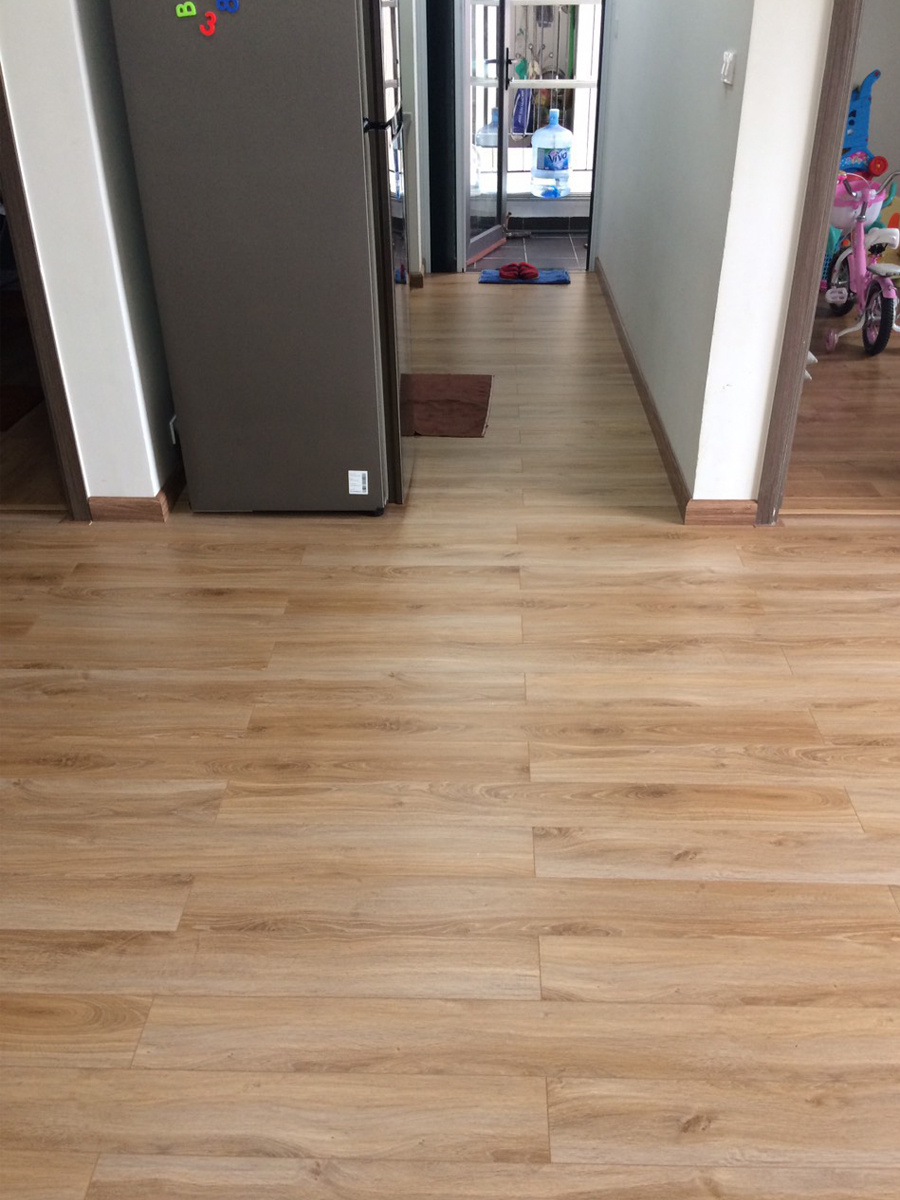 Mẫu sàn chú trọng vào thiết kế khe hèm dễ lắp đặt với độ khít cao, vừa hạn chế sâu mọt len lỏi, vừa giúp cho sàn luôn ổn định và không gây ra tiếng ồn, với chất liệu sáp bề mặt VEPS càng tăng khả năng chống thấm nước hoàn hảo.