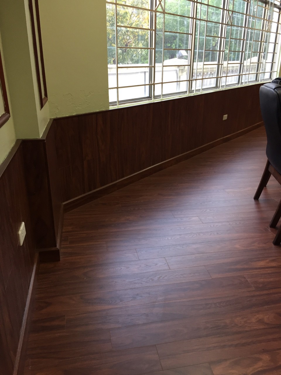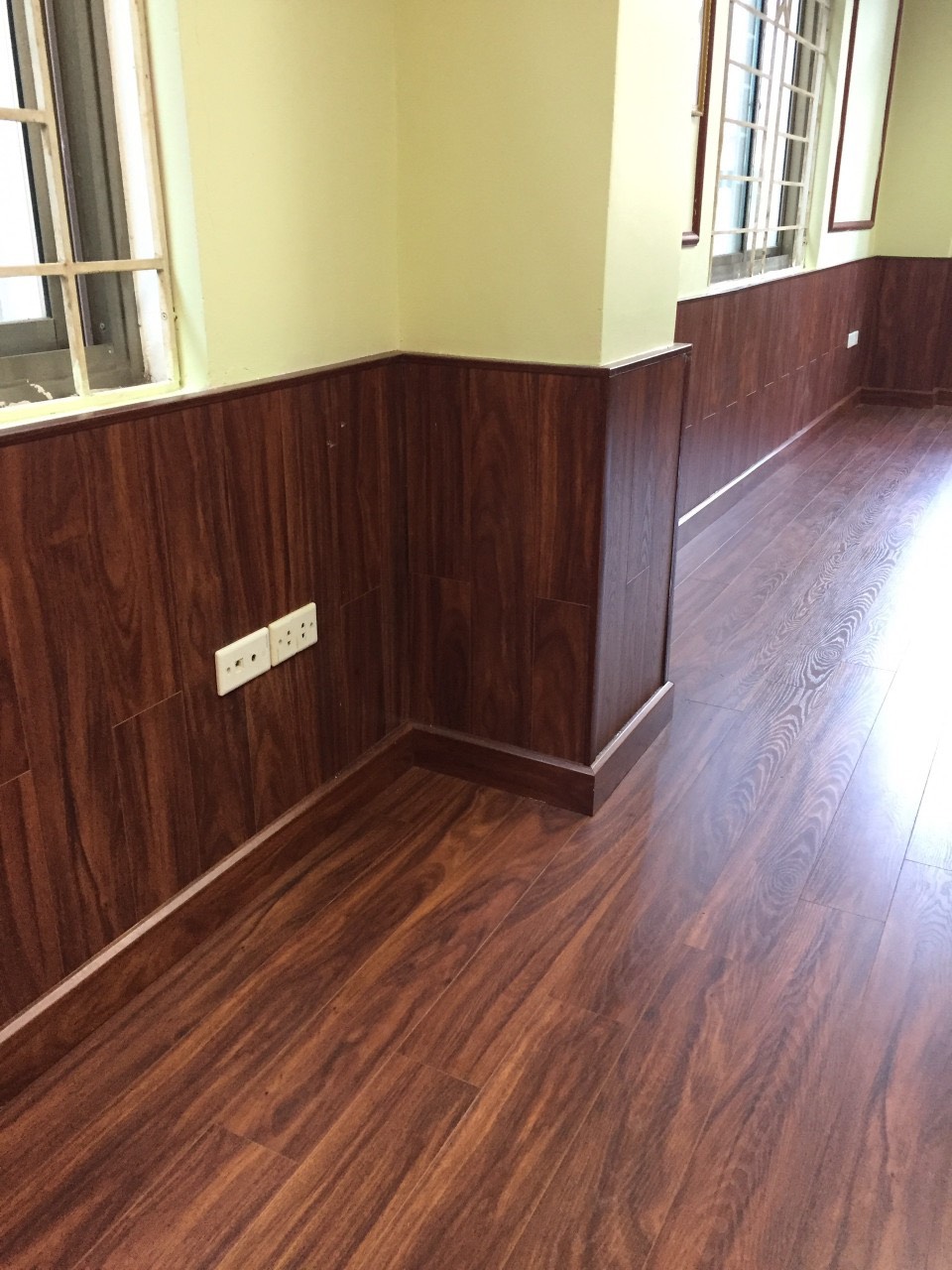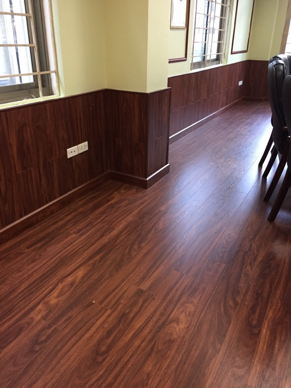 - Lớp bề mặt trong suốt chứa nhôm oxit Al2O3 được nhập khẩu từ Áo giúp ván sàn có khả năng chịu trầy xước tuyệt vời. Tuyệt đối không có hiện tượng bay màu, rất dễ lau chùi và không bám bẩn, có thể chịu được vật nuôi, chống cháy rất tốt với lửa tàn thuốc lá.